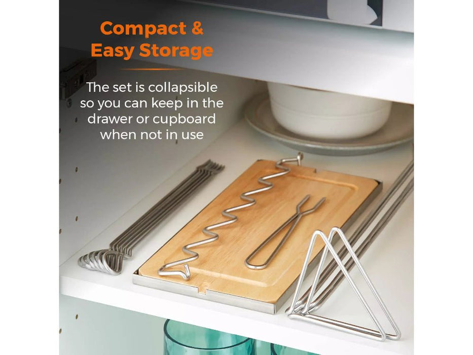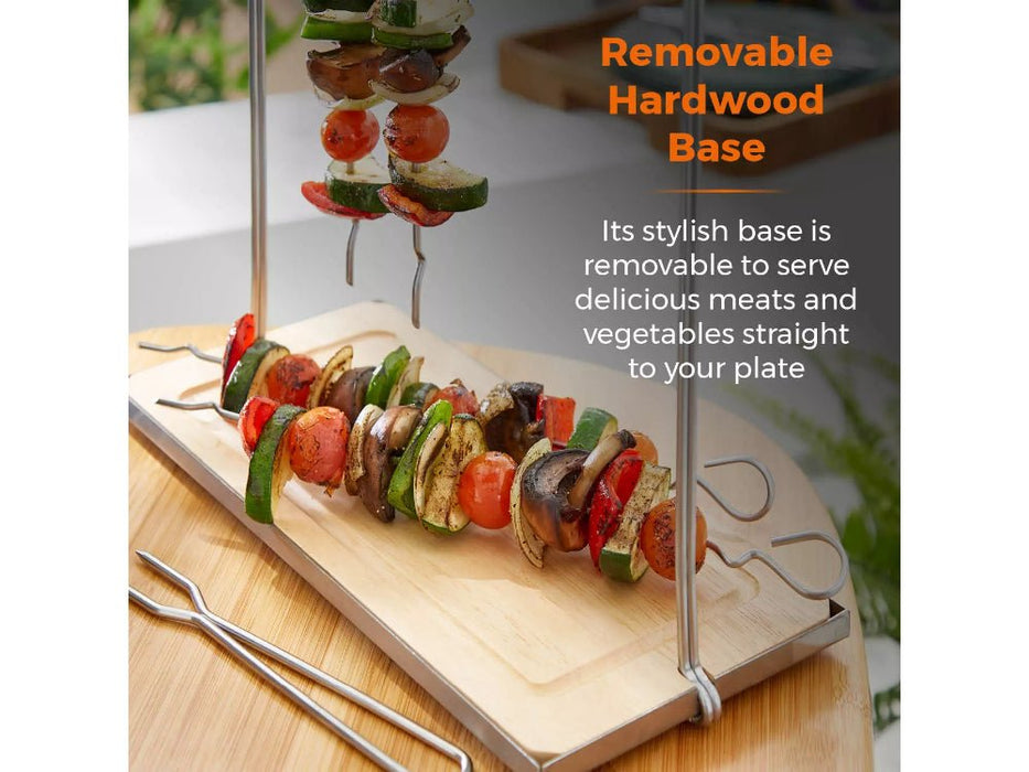 REMOVABLE HARDWOOD BASE - Simply release the food from your skewer onto the removable hardwood base, then remove and serve delicious meats and vegetables straight to your plate - also works as a handy chopping board for food prep