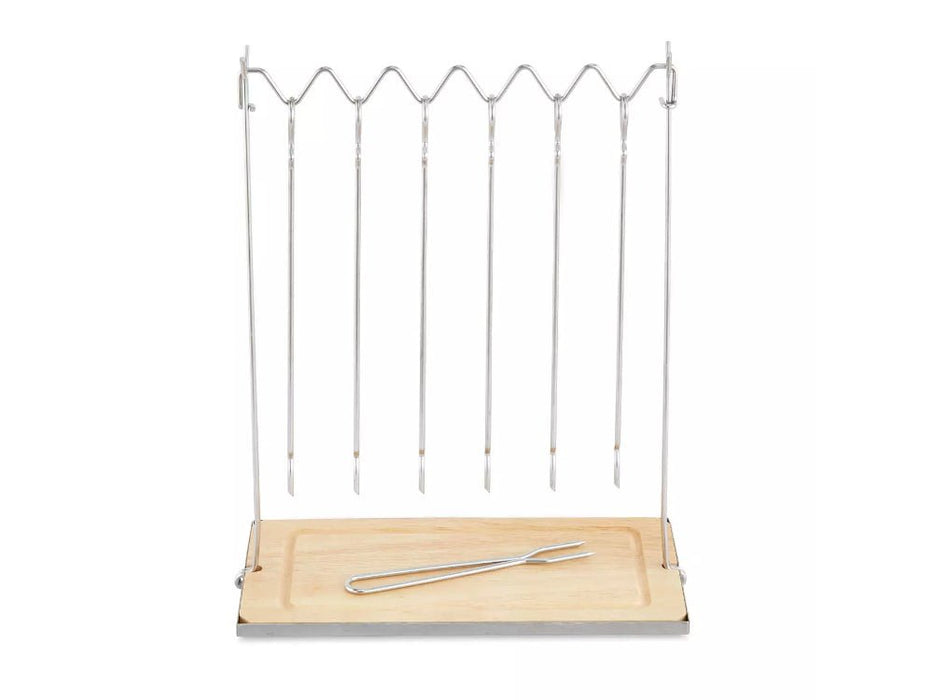 6 PIECE HANGING SKEWER SET WITH STAND - Includes 6 skewers with individual hanging hooks to hang the skewers from the stand, for easy BBQ to table serving