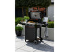 Featuring 3 stainless steel gas burners providing a high and even heat distribution across the cast iron cooking area. With a 3.3KW Side Burner, thermometer and warming rack, tool hooks and gas hose and regulator included. Built in thermometer and side table as well as a spacious storage cabinet.