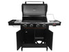 Featuring 4 3.3KW stainless steel burners offering an even distribution of heat across the cast iron grill plates. Ergonomically designed controls to accurately change the output of each burner independently with LED back lights. With a stainless steel warming rack and back burner. With Side Burner and Side Table, built in thermometer in the hood, utensil hooks and a bottle opener and a spacious storage cabinet.