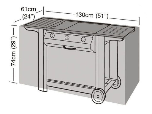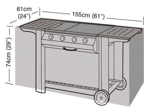 1.5m Long x 0.75m Wide x 1.2m High Designed to cover a rectangular BBQ Premium material: Specially treated woven polyester - Weatherguard Tre...