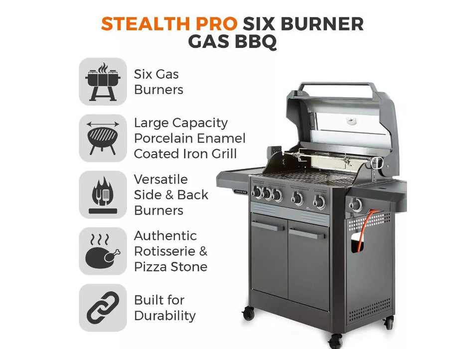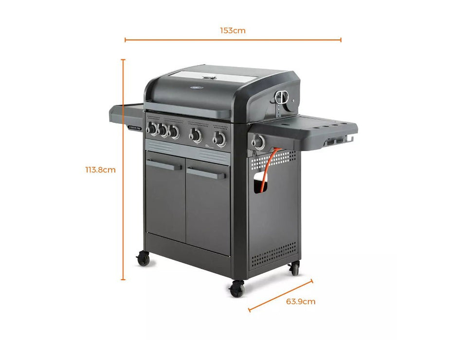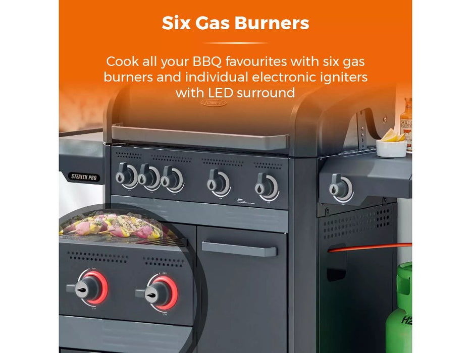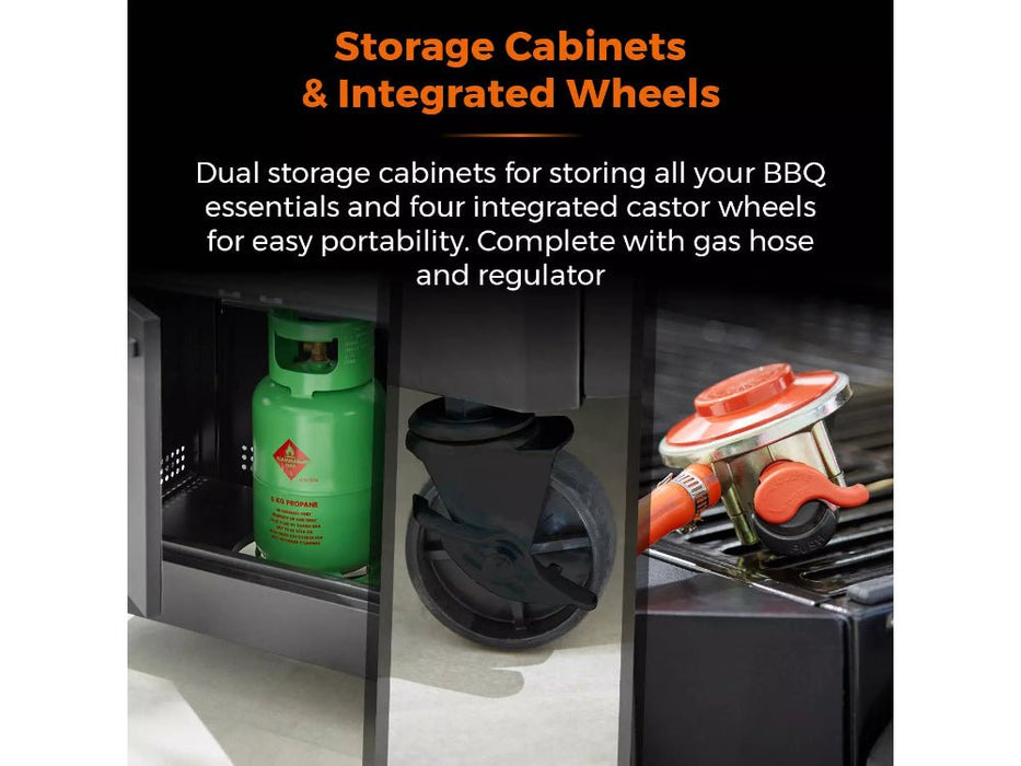 Six gas burners – Cook all your BBQ favourites with 4 main gas burners, a side burner and back burner with individual electronic igniters, so you can grill juicy burgers, charred halloumi skewers and succulent steaks at the same time