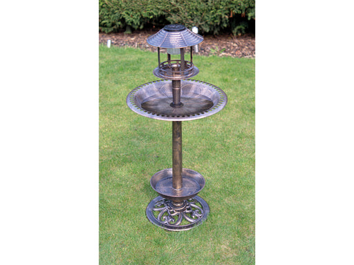 St Helens Home Garden Ornamental Free Standing, Weather Resistant, Pedestal style, Easy Assemble Bird Bath Feeder with Solar Powered Light