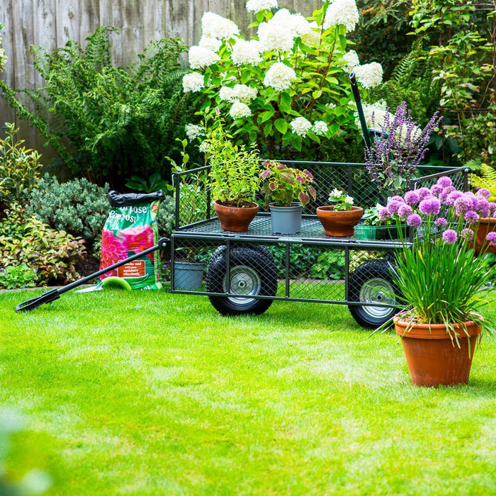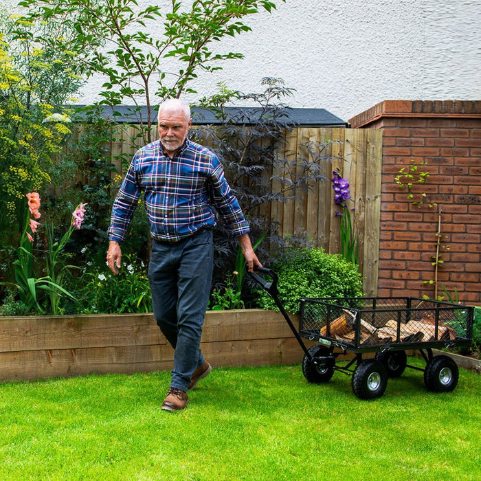 - Hinged Drop-Down Sides: Loading and unloading have never been simpler, thanks to the hinged drop-down sides. They allow you to easily slide heavy or bulky items onto the trolley without straining your back, making your gardening tasks more efficient.