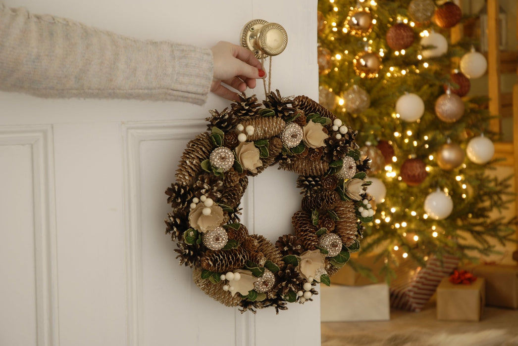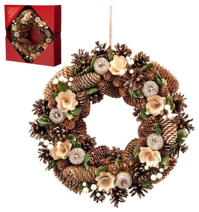 The ideal Christmas wreath to display in pride of place as guests are welcomed into your home during this festive season. Available in two sizes including a small with a 30cm diameter and a large with a 36cm diameter. The natural, hand-crafted wreath is sure to look pride of place when welcoming friends and family over.
