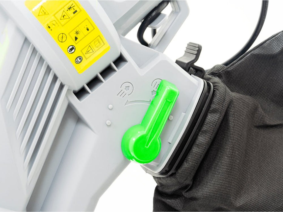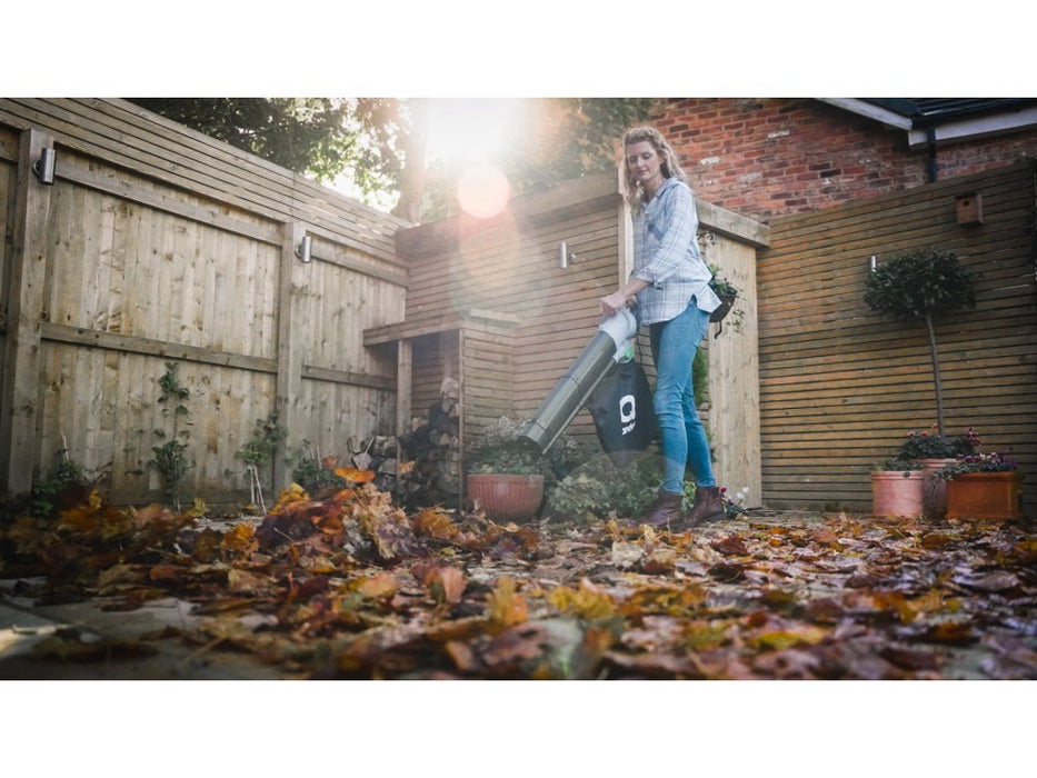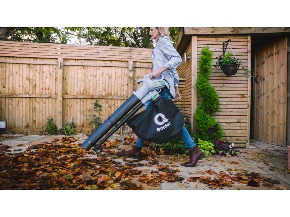 - The QGBV3000 uses a plastic fan blade to reduce down the waste by 10:1. Reducing the garden waste down by 10:1 means that you can collect more into the ample 45-litre collection-bag and ensures the waste is a highly compostable mulch, perfect for adding to your garden.
