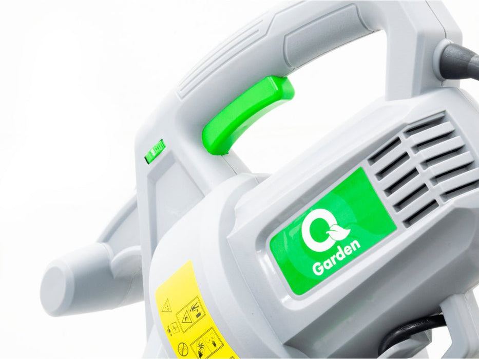 The Q Garden Blower and Vacuum is equipped with a hugely powerful 3000w motor and supplied with a long 10-metre power cable, this is suitable for outdoor clear-ups or your garden waste. It incorporates a shredding system that reduces vacuumed material down to an easy to dispose of mulch; and it features a variable speed-control for enhanced flexibility of use.