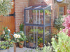 City Growhouse with aluminium frame and toughened glass. Adjustable seed tray shelves and mist watering.