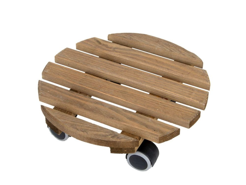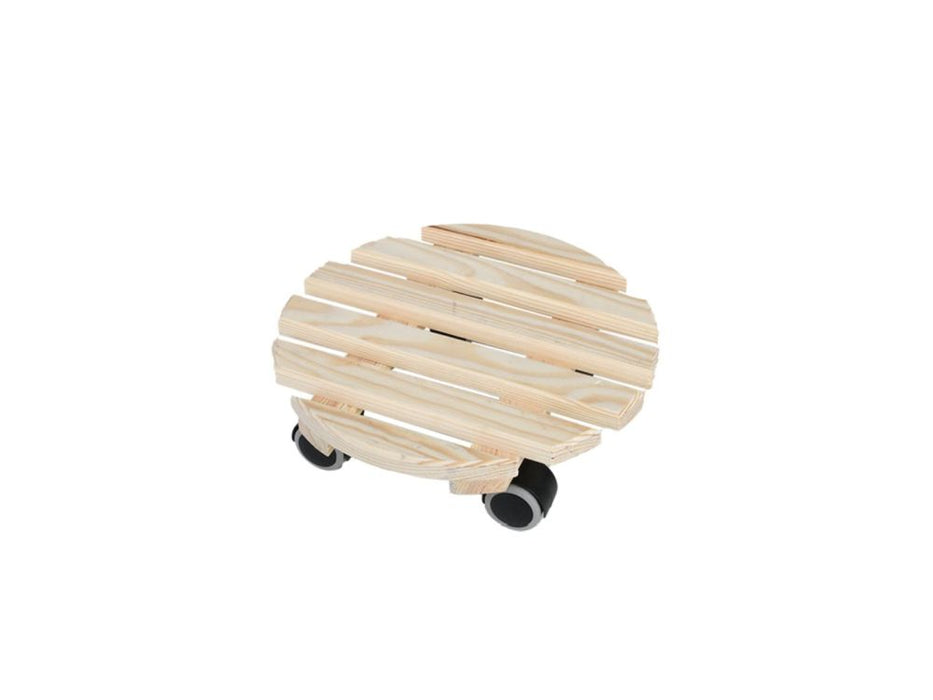 Featuring a circular wooden design, the sturdy holder protects pots and plants from scratches when being moved around. This wooden pot caddy also works great on patios and balconies.