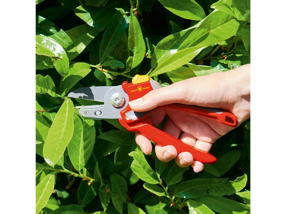 Specially for those with a lot of cutting to do there are the Premium secateurs with power anvil for easy cutting, precision-ground non-stick blades, adjustable blade pre-tension and permanent spring. The ergonomic handle with the soft insert on the top acts together with the sliding lower handle and the easy-on-the-wrist 30 degree cutting angle for perfect handling. The cast zinc anvil and blade lever can be changed. The secateurs are suitable for both right and left handers and cut up to 25 mm.