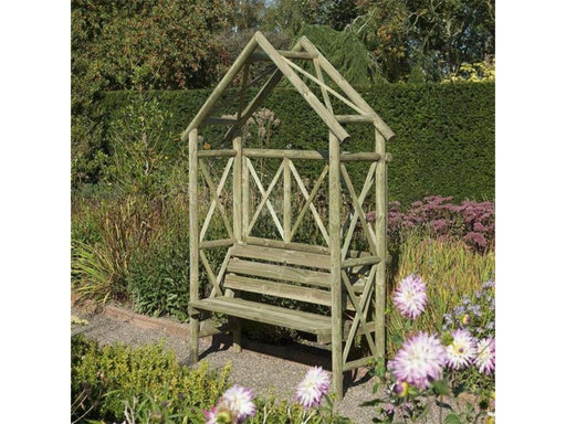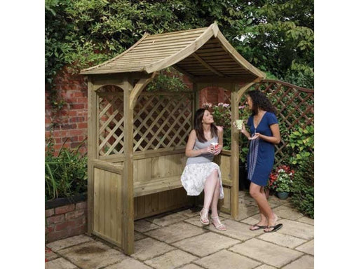 Traditional Style Arbour Open Slatted Roof Pressure Treated Against Rot Natural Timber Finish Easy Two Person Assembly Comprehensive Instruction...