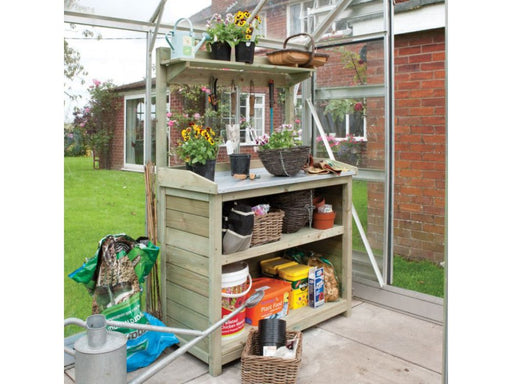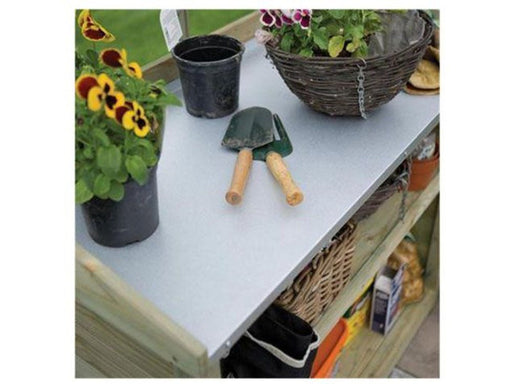 Metal work top zinc coated for rust resistance Hooks for hanging tools Height adjustable high level shelf and two storage shelves under worktop P...