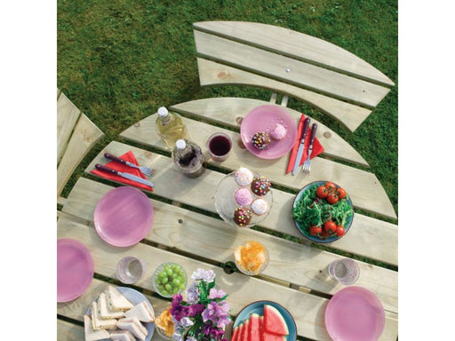 Alternative circular design Seats up to 8 people Sturdy construction Can be painted or stained if desired afterward 50mm parasol hole in table P...